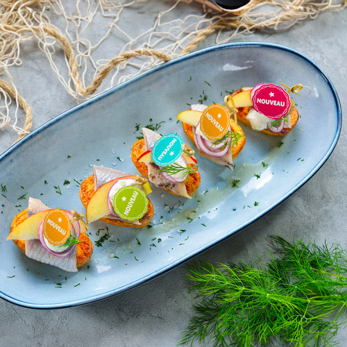 Distinguez-vous dans un marché ultra-concurrentiel. Mettez votre logo, une promo ou votre univers au cœur de chaque service. Une bouchée = un message.